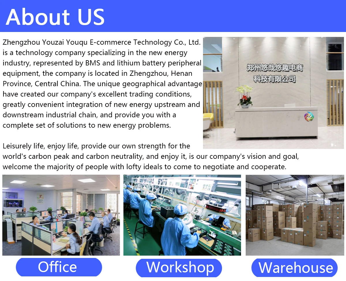 ☆☆☆ --- Power batteries, energy storage batteries and other types of lithium batteries can be customized. ☆☆☆--- The voltage of the battery is 12V~96V, and the capacity is 20Ah~200Ah, all of which can be customized. ☆☆☆ --- Battery cells are all used in China's mainstream battery cells, such as CATL, Guoxuan, EVE, etc., and the brands specified by customers can be accepted. ☆☆☆--- Battery' BMS is equipped with China's leading intelligent BMS, JK BMS, BMS can be customized according to customer requirements. ☆☆☆--- Battery' cycles is about 2500 times, and the service life can be as long as 8 years. ☆☆☆--- The interface of each battery can be customized according to the standards of different countries. ☆☆☆--- The box of the battery is stainless steel shell by default, and the size and shape can be customized according to customer requirements. ☆☆☆--- Each battery comes with a charger by default, and the charger can specify the brand and model according to customer requirements. ☆☆☆--- Batch professional automated battery assembly production line, with a daily output of more than 100 sets of battery packs.