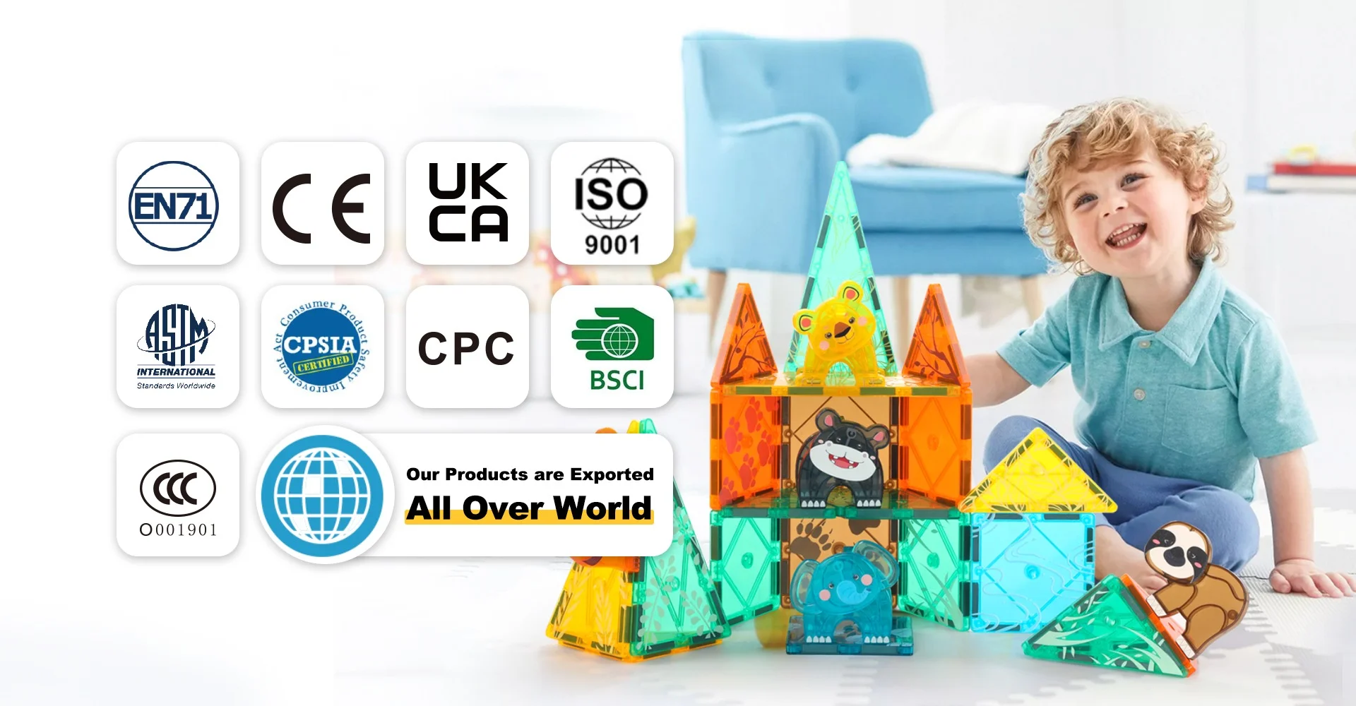 A:Our products are EN71, ASTM &CE approved