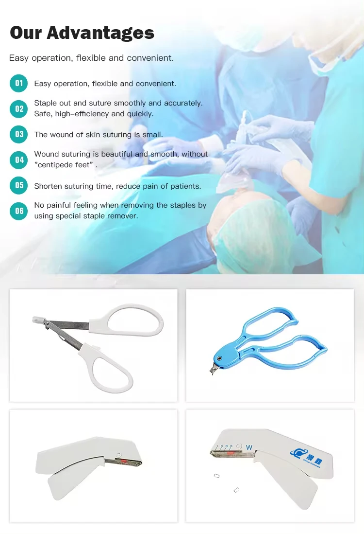 Our skin stapler is simple and reasonabledesign, easy to operate.