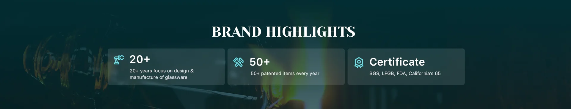 Artwork Treatment | Decoration / Solid Color Glass / Painted Color / Decal / Electric Plating Color / Hand Cut / Hand Etched / Laser Engraving / Frosted / Luster Finish / Sand Blasting |