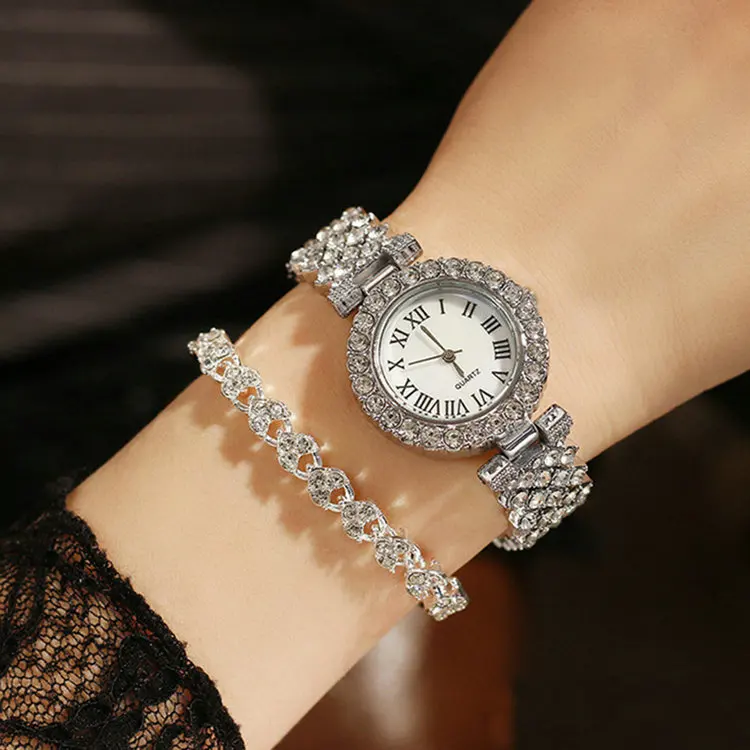 Product name | Qushine Hot Selling Diamond Quartz Watch Double Diamond Bracelet Set For Women |