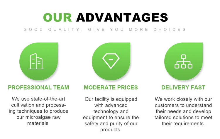 1)sources of protein and oil; 2)synthesis a lot of bioactive compounds, such as DHA, EPA, Astaxanthin, paramylon; 3)microalgae industries are sustainable and environmental friendly compared to conventional agriculture and chemical engineering. We believe microalgae have huge market potential in health, food, energy and farming. Welcome to inspire a microalgae world together with