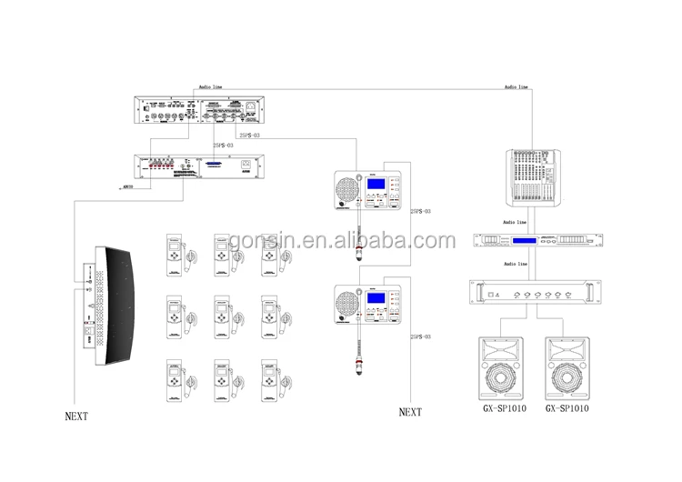 Extensibility | It can be used together with wired interpretation system, and FS-FHSS wireless interpretation system from Gonsin Series. |