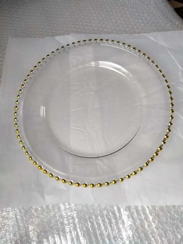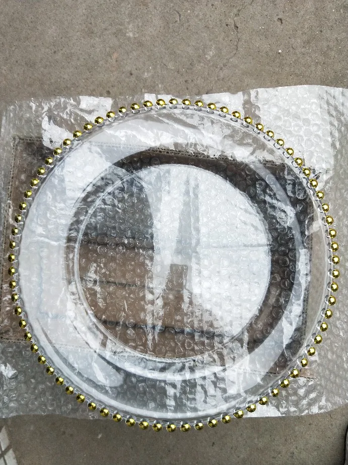Item name: | Bulk White Plastic Charger Plates with Gold Bead Rim 13 inch Reusable Round Dinner Plates For Wedding | ||||||