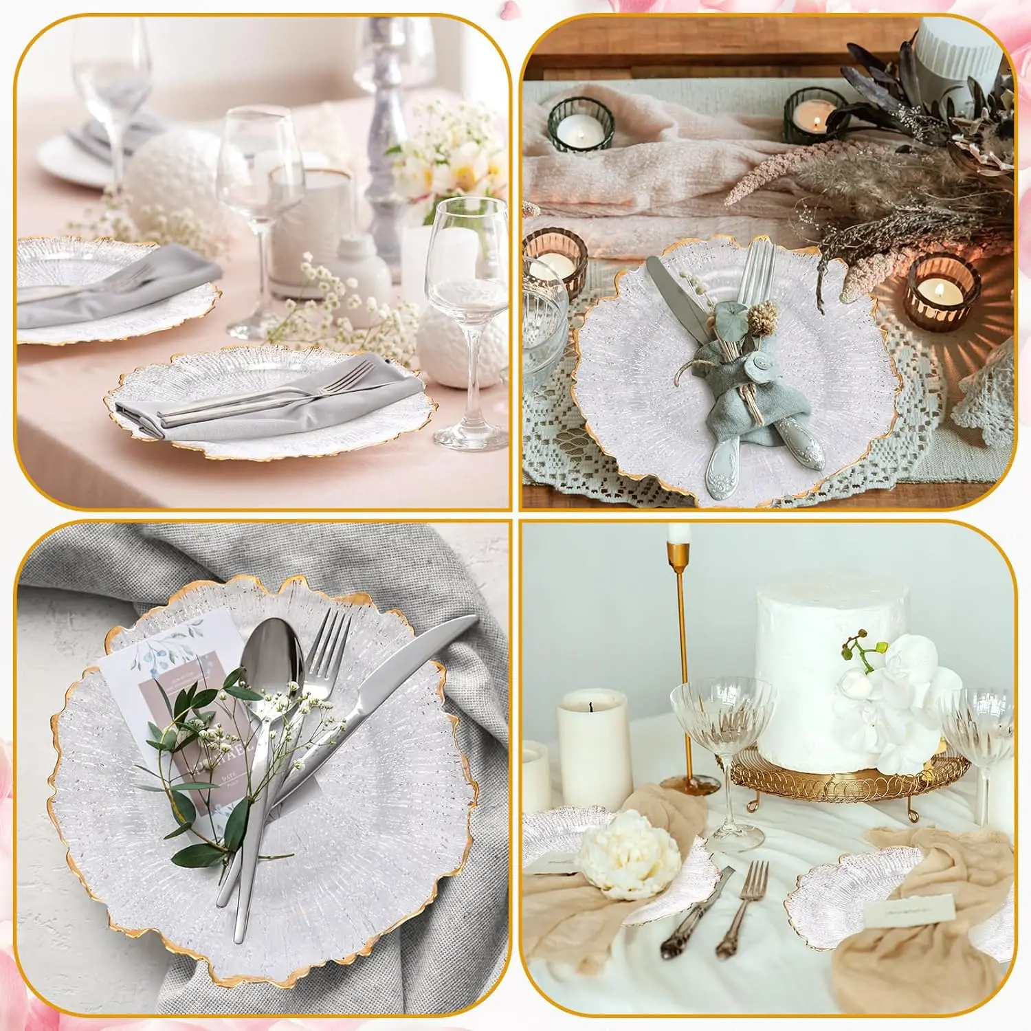 * IMPRESS YOUR GUESTS – Featuring a reef design, these round charger plates will enhance the appearance of your reception tables. This set also makes a great gift. * HIGH QUALITY – Made of pure polypropylene that will never wear-out or get discolored. Great to use with fine china and to protect the linens from the plates and bowls. They are easy to clean, just wash with hot water. * PARTY PERFECT – These reef charger plates are perfect for your bridal showers, beach side celebrations and outdoor reception, graduation, birthday parties and more. * EVENT DECORATIONS – Pair these round charger plates with other BalsaCircle wedding decorations, such as chair covers, overlays, cake stands, centerpieces and DIY craft supplies.