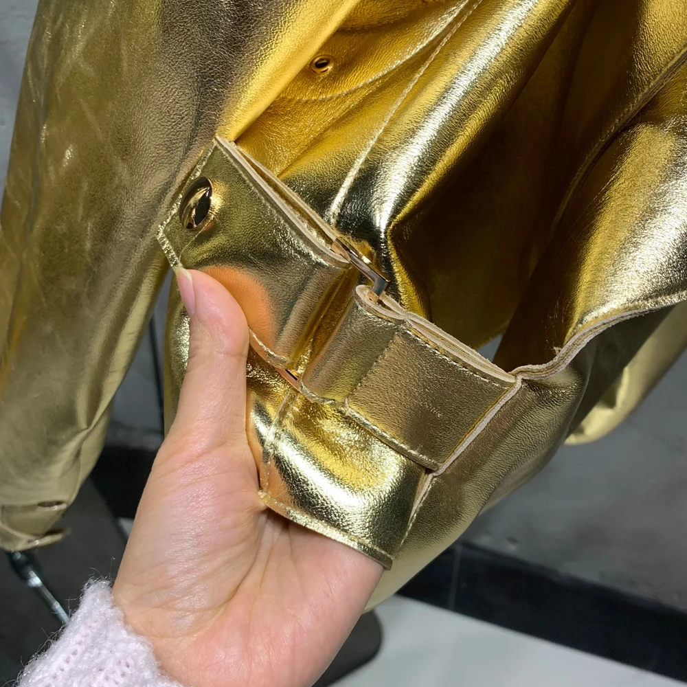 Keywords | Shining Gold Color leather jacket |