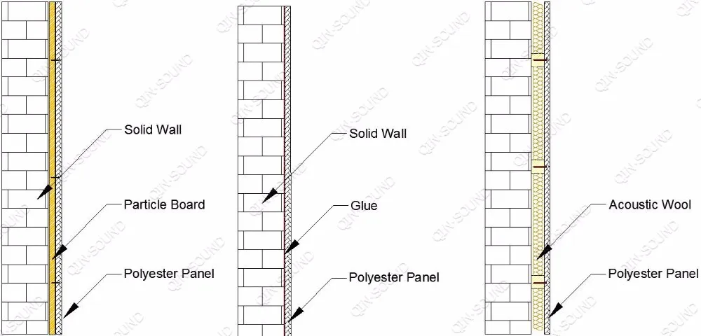 Qinsound polyester acoustic panels are made of 100% environmental Polyester fiber, have excellent soundproof performance in both mid and high frequency. They are decorative and easy to cut into different shape and size with knife, you can design the pattern can put them together. Finally, attach the panel on wall with glue or nail.