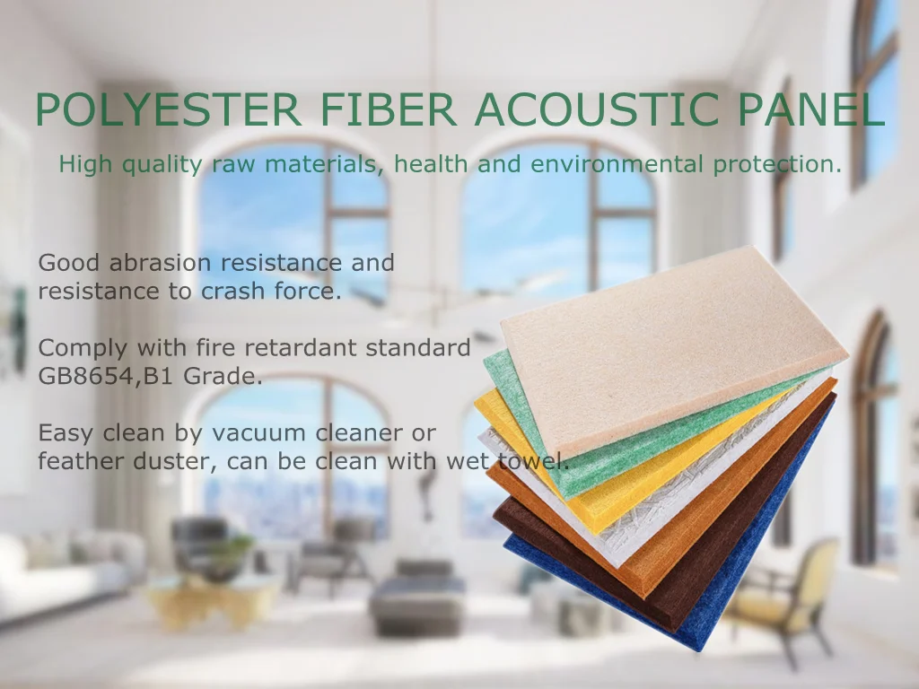 Polyester acoustic panel is widely used to absorb sound in office, hotel, office, auditorium, stadium,etc. Especially in cinema, home theatre, conference room, KTV
