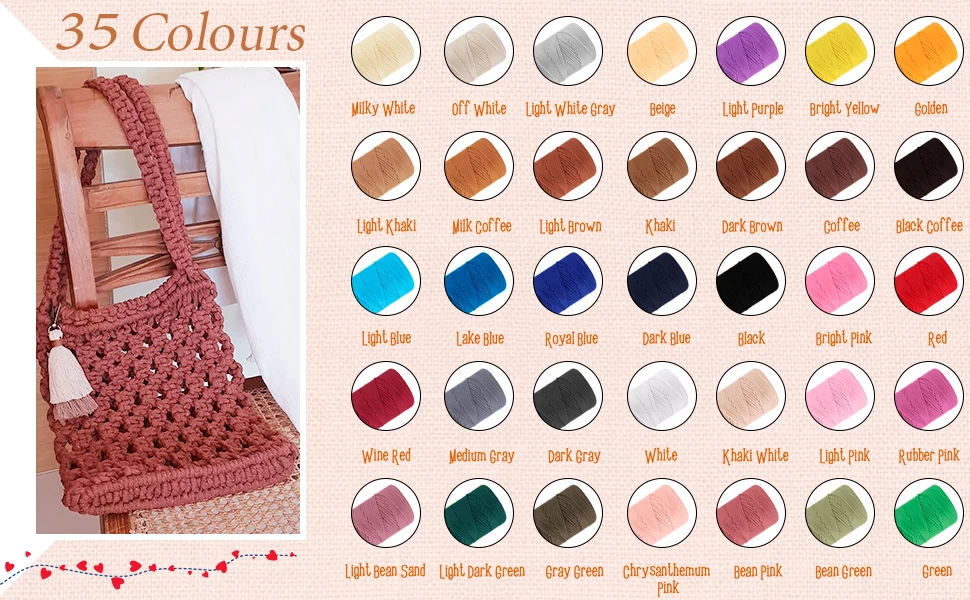 usage | Seat covers, macrame wall hangings, rug, bag, keychain, jewelry, home decor, etc. |