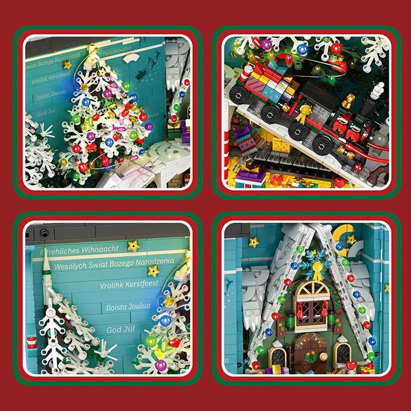 Name | Street View Christmas Village Tree House Train Building Blocks Bricks Assembled Model With Led Light Toy For Kids Christmas Gift |