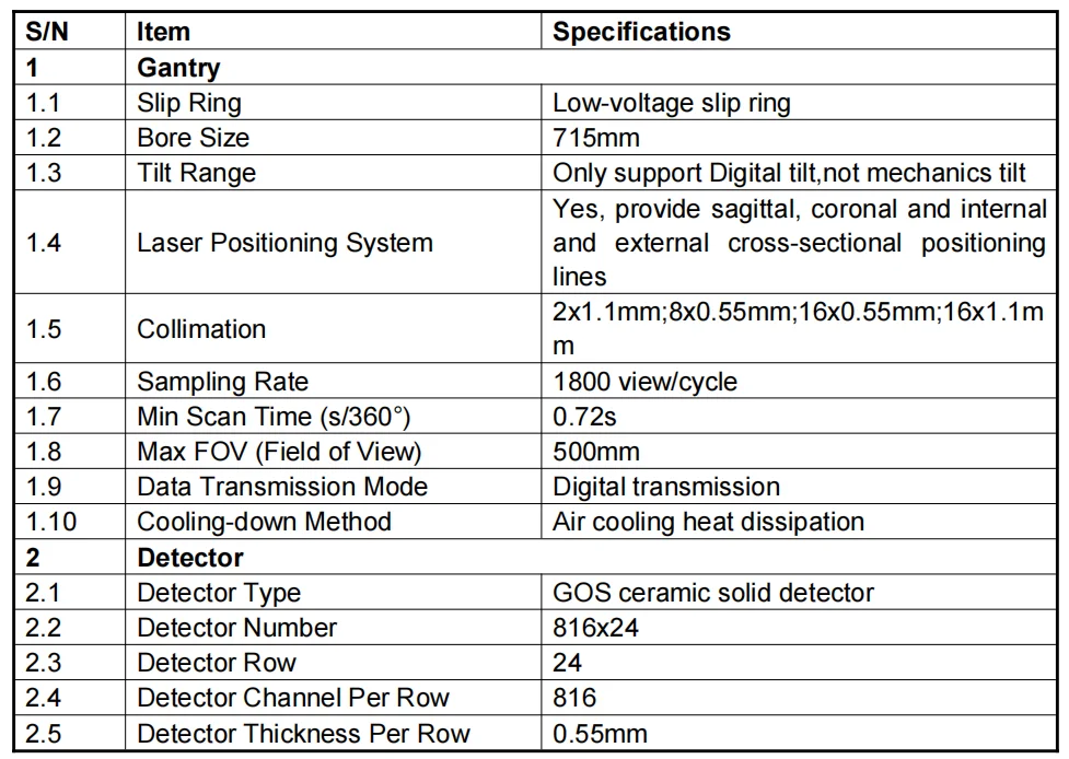 It can obtain the thinnest CT images in the 0.275mm and has obvious advantages in the application of inner ear imaging and pulmonary nodule detection. 32-slice dual energy imaging extended the application of CT dual energy imaging MSLCTX12 CT system provides high quality images and stable performance which can help hospitals to achieve comprehensive accurate diagnosis, and it will redefine the news tandards of 32-slice CT imaging.