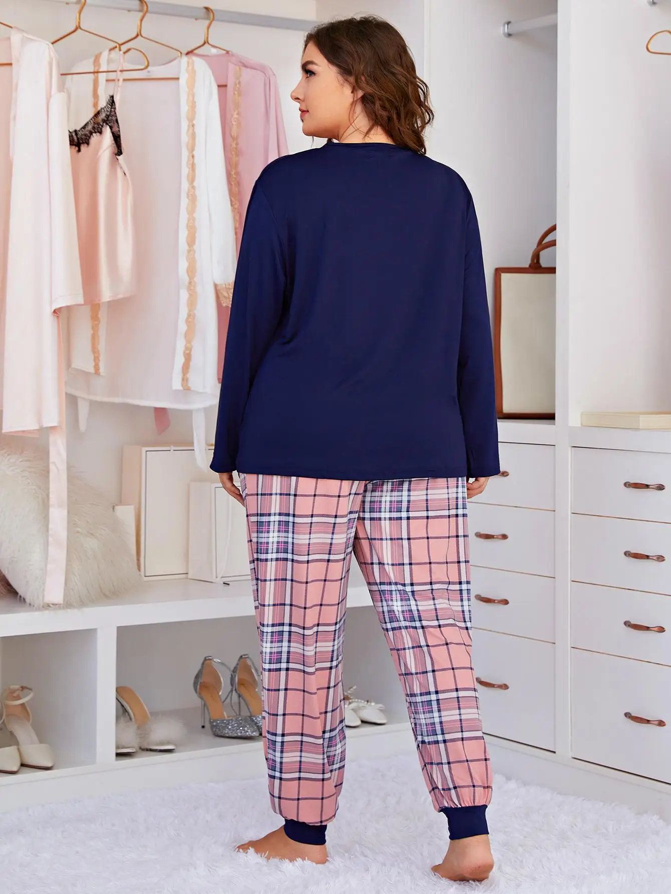 Womens Plus Size XL 5XL Soft Pyjamas Set Long Sleeve Top and Pants Nightwear Pajamas Home Clothes Comfy Cozy Pajamas for Girl