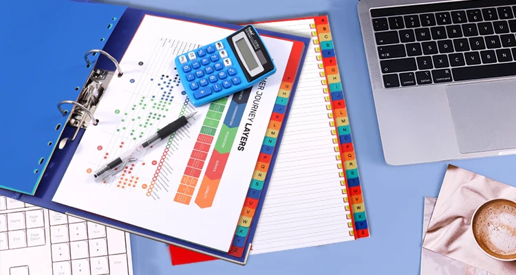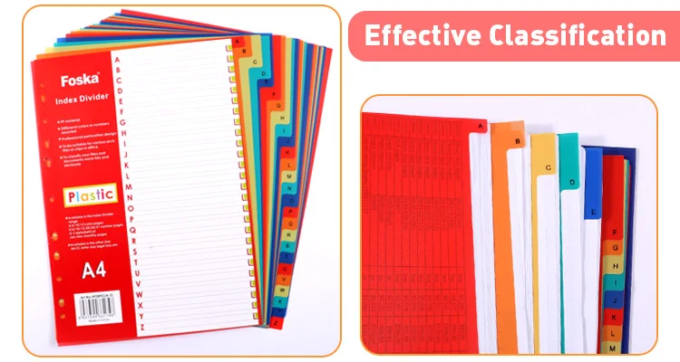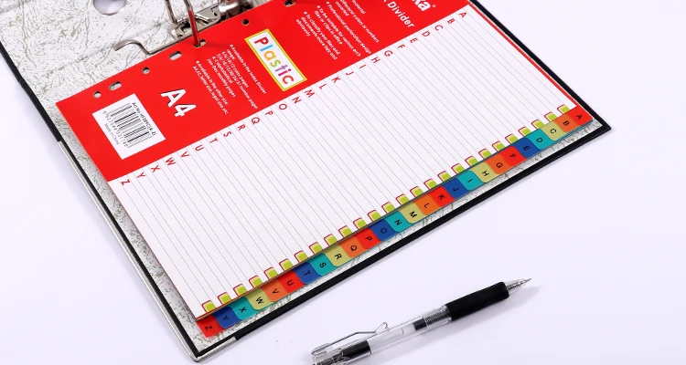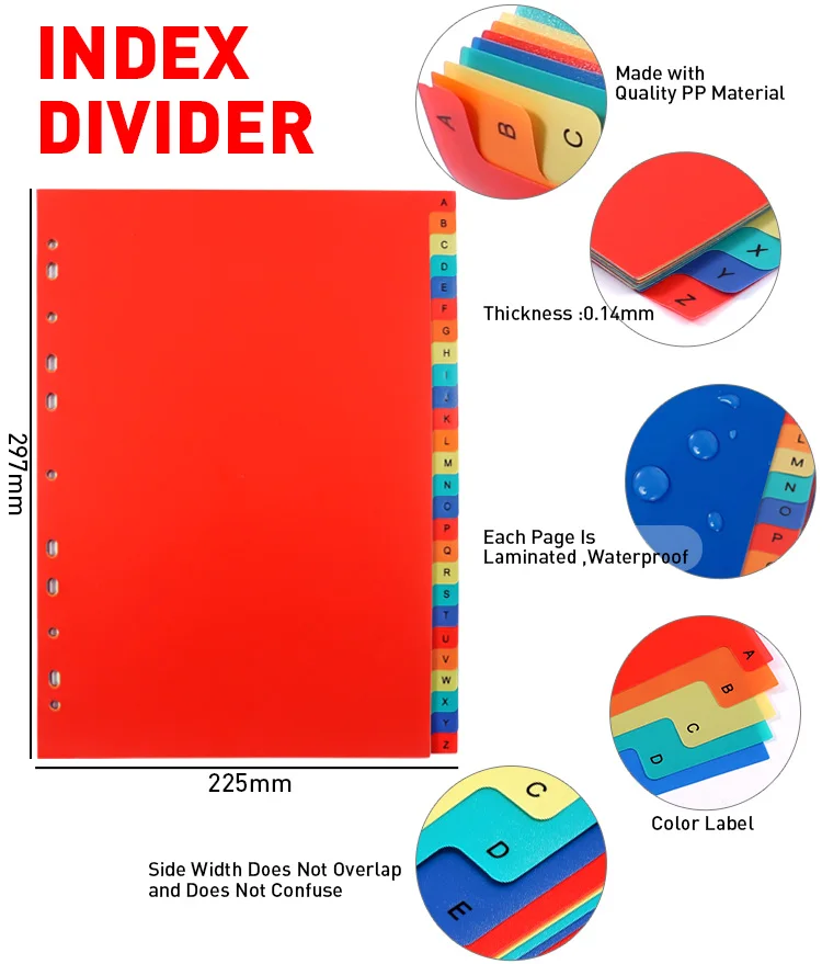 Spec. | A4 5 Colors 10 Colors 12 Colors | A4 1-10 Tabs 1-12 Tabs 1-31 Tabs | A4 From January to December | A4 A-Z 16 Tabs |