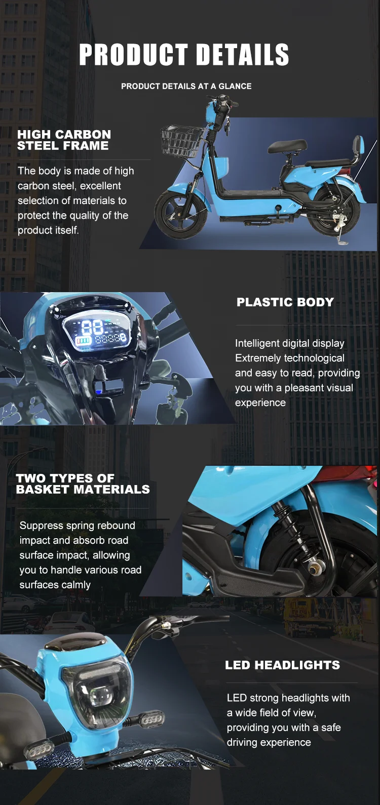Frame Material | Steel | Battery Capacity | 48V12ah/48V20 ah |