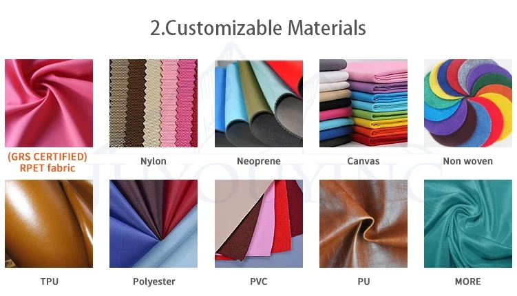 A4:We specialize in polyester,non-woven, nylon, RPET, cotton, canvas, jute, felt,velvet,bamboo,and other environmentally friendly materials bags, including a variety of styles, shopping bags,gift bags, promotion bag tote bags,drawstring bags,dust bags,foldable bags, cosmetic bags, storage bags, cooler bags,garment bags,aprons and ultrasonic bags.