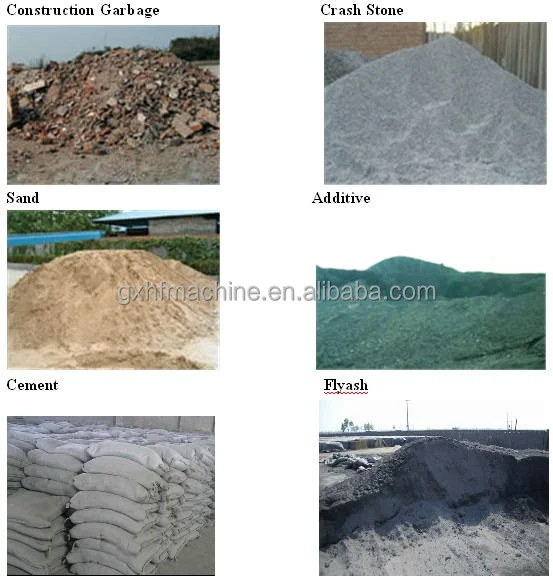 Raw material :crushed stone, cement, cinder, slag, sand,clay,gangue, perlite,coal fly ash and other industrial wastes.