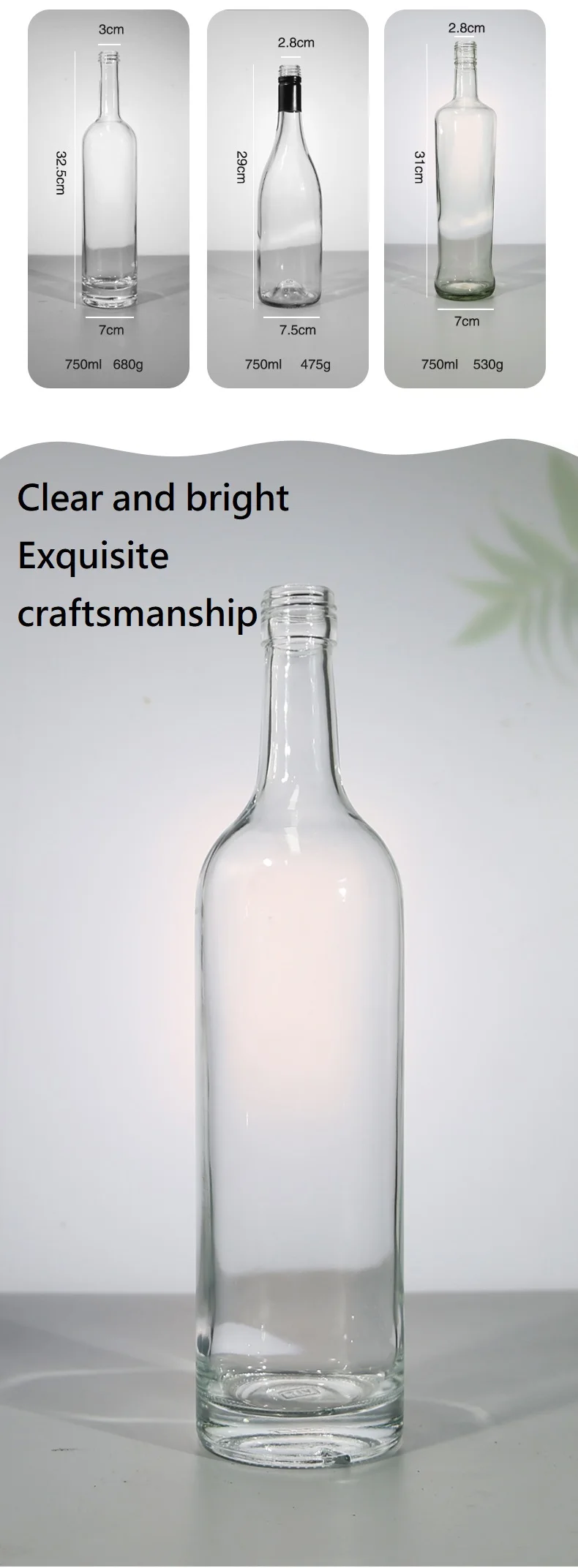 750ml Sparkling Glass Bottle Clear Wine Bottle Empty 75cl Champagne