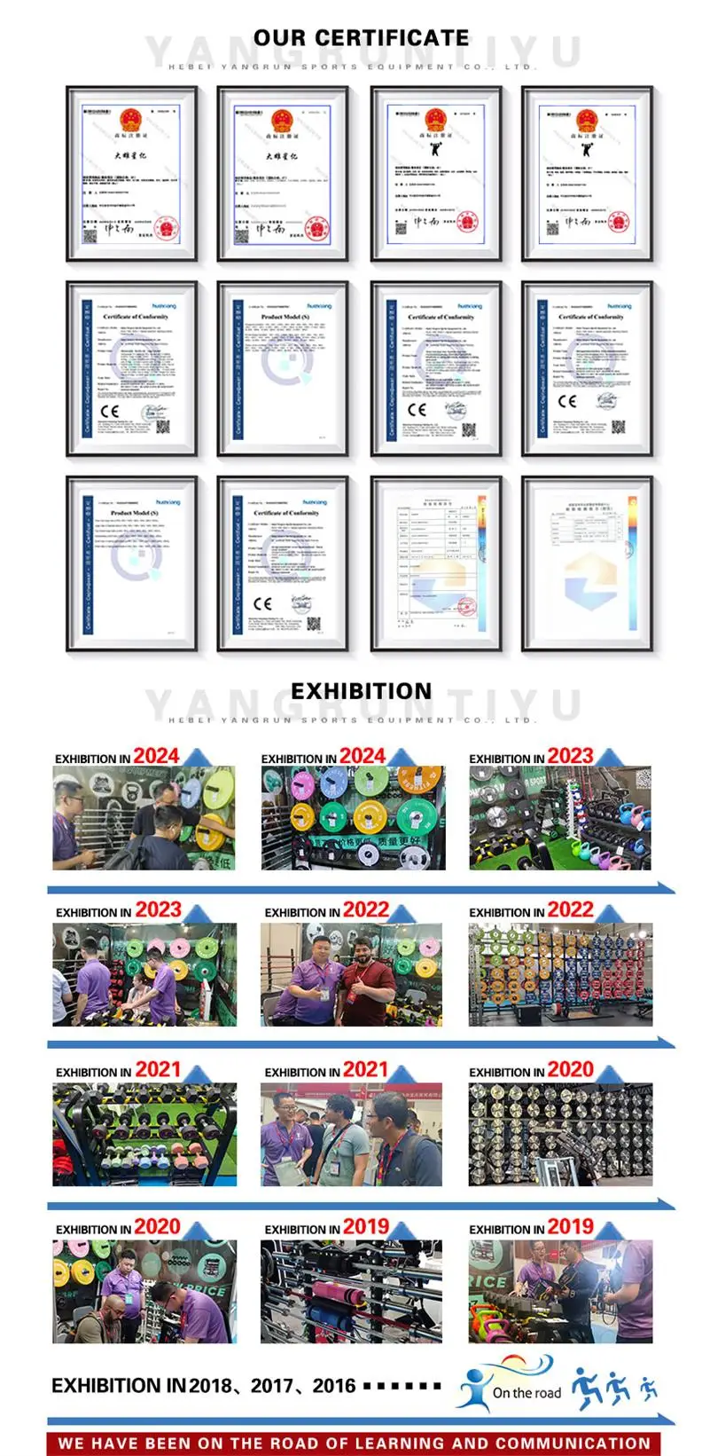 Hebei Yangrun Sports Equipment Co.Ltd was established in 2005,which located in Dingzhou sports goods industry Hebei province,we are sports goods Factory,We have hundreds of workers and a professional design and development team.
