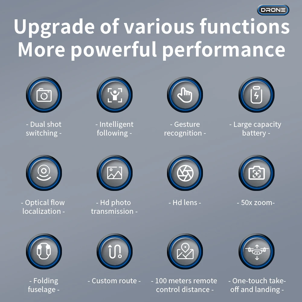 Function | Headless mode, Altitude Hold Mode, 3D View Mode, With Camera, With LED lights, with G-sensor, 3D flip, One Key Takeoff / Landing, APP Control, Voice control, With Remote Control, Without Remote Control, Foldable |