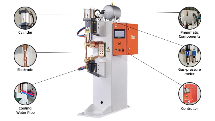 Model | Power Supply ø/V/HZ | Primary Cable mm² | Max Primary Current(KA) | Rated Duty Cycle (%) | Welding Cylinder Size(Ø*L) | Max Working Pressure(0.5MP) N | Compressed Air Consumption (Mpa) | Cooling Water Consumption (L/Min) | Compressed Air Consumption (L/次) |