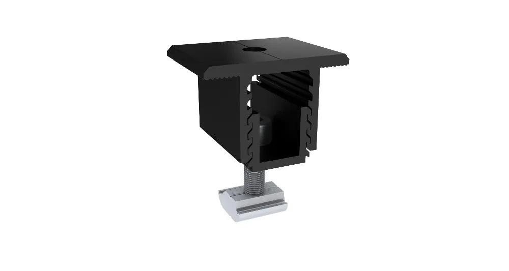 Made of extruded anodized aluminum,with universal and adjustable clamp to realize 30-50mm framed and 5~7.5mm thin film solar panel installation.