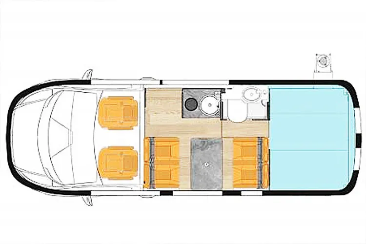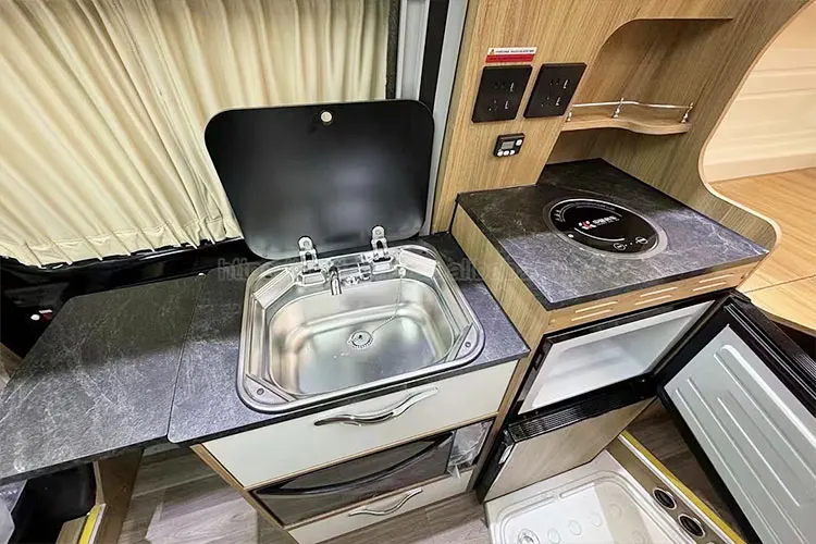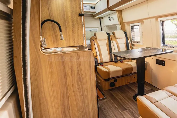 Outside facilities are abundant, equipped with outdoor diesel stoves, integrated boarding steps, manual awnings, etc., to get a rich outdoor camping experience.
