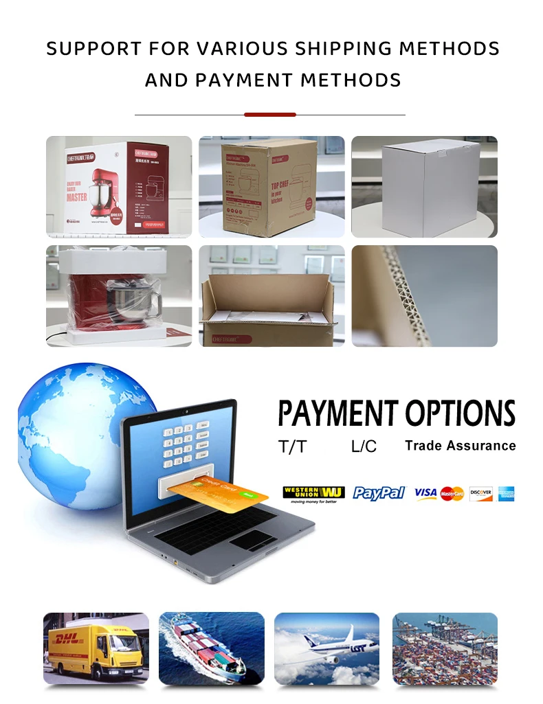Product Selling Point | ABS plastic housing LCD indicator light for clearer vision and decoration Anti-slip suction feet for mixing more stably Planetary rotation for mixing thoroughly Strong gears + belt transmission structure Optimum dough mixture: 600g flour + 320g water Suggested dough mixture: 1000g flour + 530g water Max dough mixture: 1500g flour + 800g water High capacity 10L stainless steel food safe mixing bowl 2200 powerful and cost-effective motor Optional WIFI Function for smart control Tilt head mechanism with safety switch for safe spare part ejection |