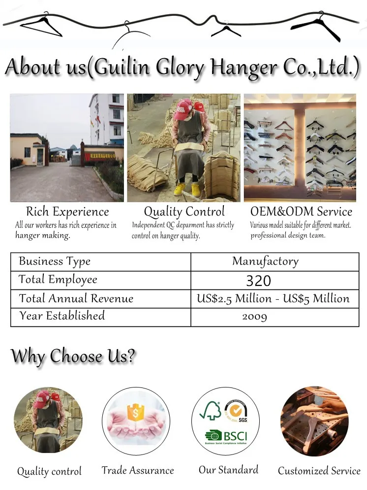 Guangxi Guilin Glory Hanger Co., Ltd. is located in Guilin, China.We are a factory which specialize in manufacturing many kinds of hangers over 10 years, with clients all over the world.