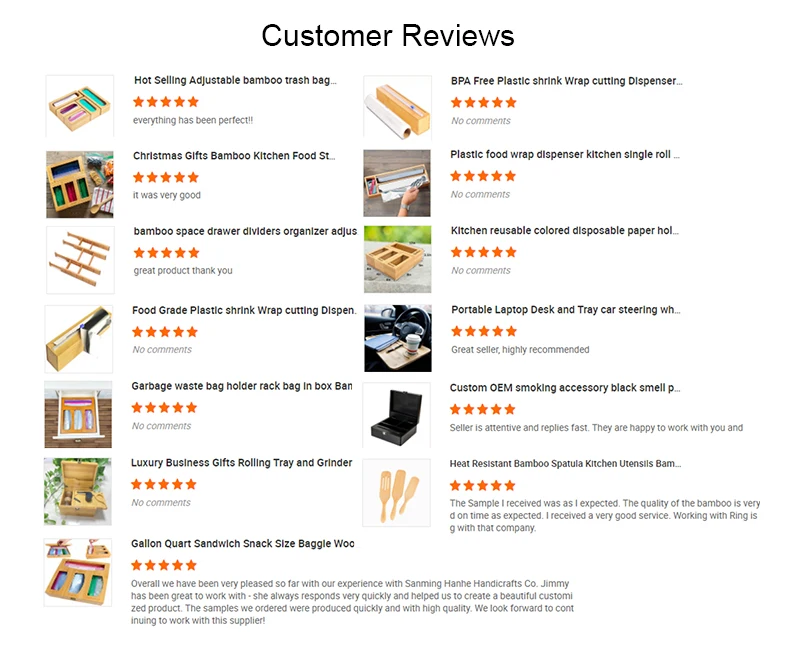 Q1: Are you a factory or trayding company?We are bamboo wood manufacture for more than 10 years experience, and we have two stores on Alibaba. The first one has been created for over 7 years.