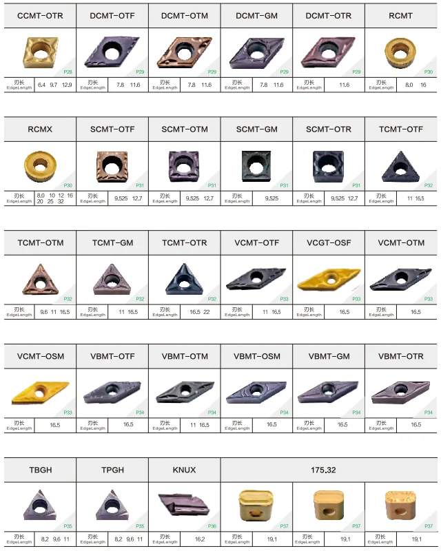 CVD (MT-TiCN+Al203) | Yellow | 1330 | High Co content substrate combines with thin MT-TiCN and thin Al2O3 coating,it is optimized for impact resistance and wearing resistance,also easy to recognize wear.It is suitable for general steel milling machining. |