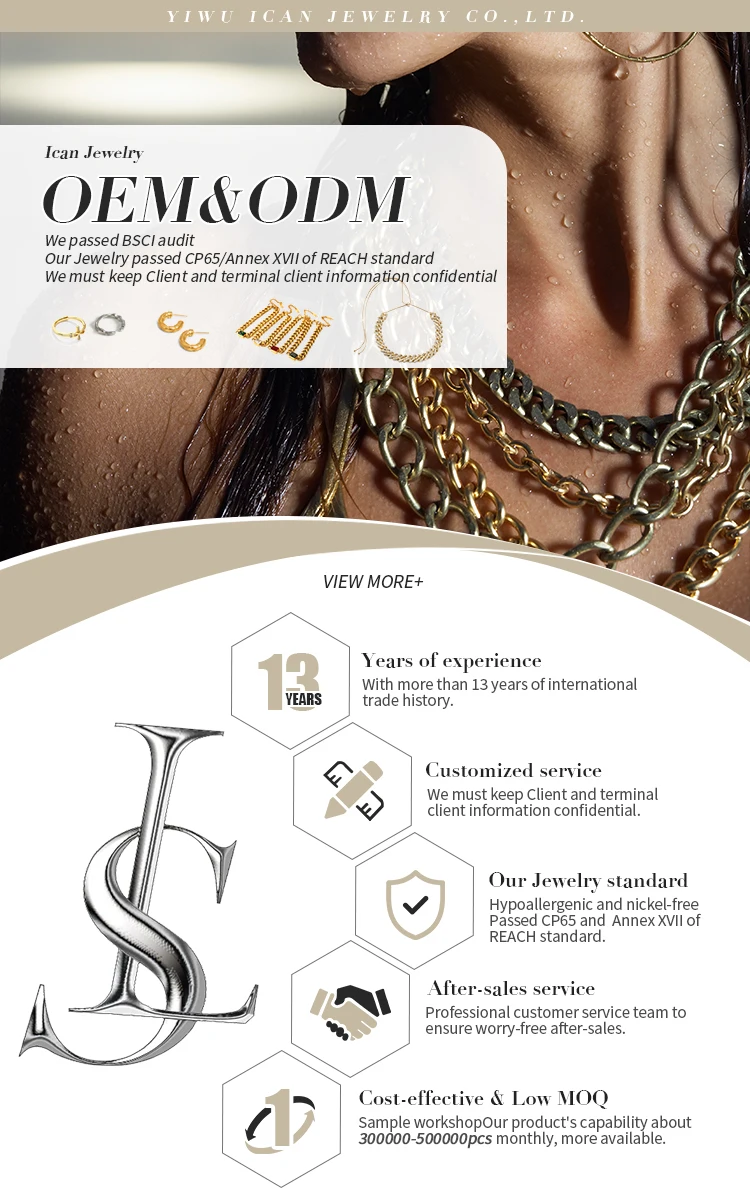 Ourcompany is located in Yiwu City, engaged in producing high-quality Fashion Jewelry and Fine Jewelry for the US and Europe, etc. Wehave 12 years' jewelry experience and win a good reputation among clients.We providing you step by step from Design to ProductionWith:CUSTOM and In-House Design QUALITY service and production100% QUALITY CONTROL piece by piece FREE SAMPLES CUSTOM packing ON-TIME delivery IN-TIME Response and Quotation HONESTY and HARD WORK. Our team research the US market every year and visitcustomers in Oversea to research together and discuss the new designs.