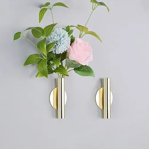 Wall Decor Sticker Metal Flower Vase & Faux Plants Hanging Planter Wall Mounted for Home Decoration and Gifting Purpose