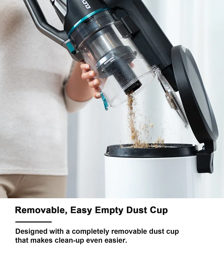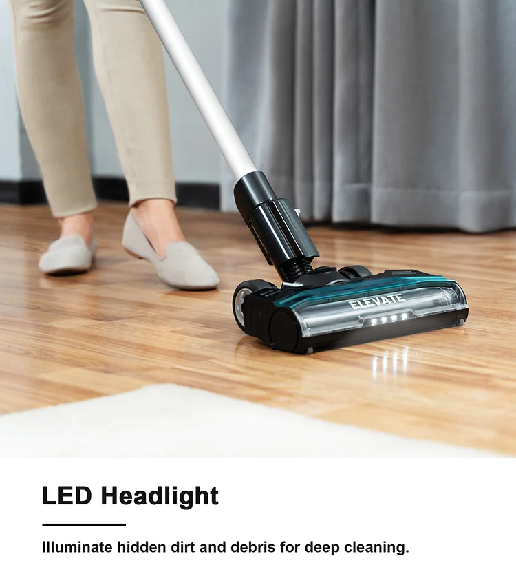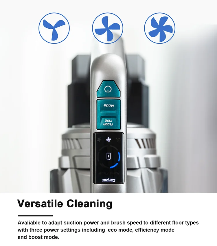 Power Vacuum Suction Filter system Removable battery Battery Charging time Mode choice Running time Dust capacity Noise Display Weight of handheld Net weight Gross weight Package size Accessories | 450W 25Kpa 155AW High efficiency filter cyclone Yes 29.6V 8*2500mAh 4h 3 Modes 12/30/90min 0.7L 80dBA LED UI 3.53pounds 7.72pounds 9.92pounds 30.3 x 13.2 x 7 inches 1.Electric mite removal brush 2.Crevice tool 3.2-in-1 Dusting brush 4.Extension hose 5.2-in-1 Wall mount 6.Adapter |