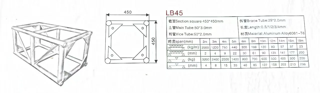 Section Shape | Ladder truss, Triangle truss , Square truss, Circular truss; | |||||||