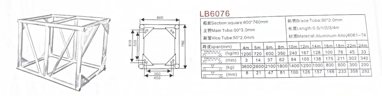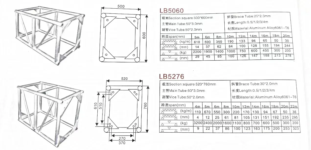 Bolt Truss | 300*300mm;350*350mm;300*400mm;400*400mm;450*450mm;400*500mm;500*500mm;520*760mm;600*760mm | |||||||