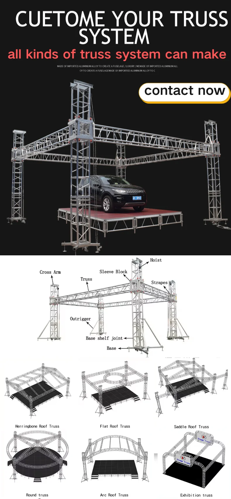 Product Name | Spigot Truss, Bolt Truss, Global Truss, Roof Truss , Concert truss, Stage Truss;box truss; Thomas Truss; light truss stand; layer truss; Aluminum truss; truss barrier | |||||||