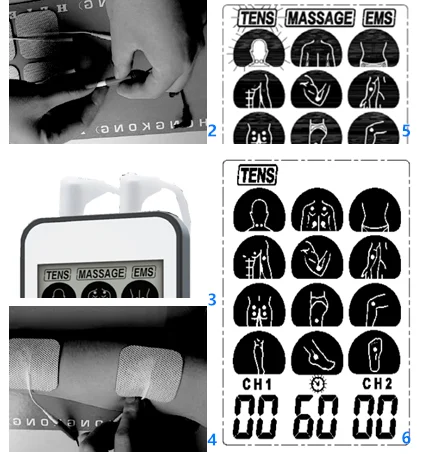 Number of treatment program | TENS: 12 programs; EMS: 12 programs; Massage: 12 programs | |