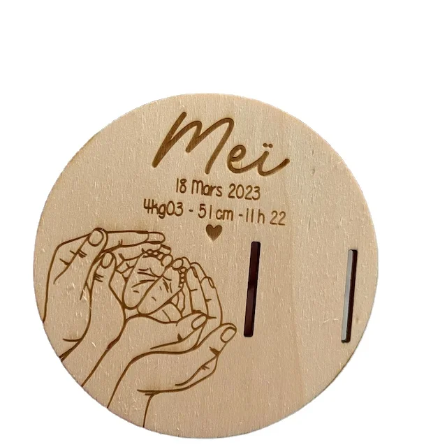 Hot sale Souvenir Laser engraved birth Bracelet Holder Wooden Support cards sign for Newborn Gifts