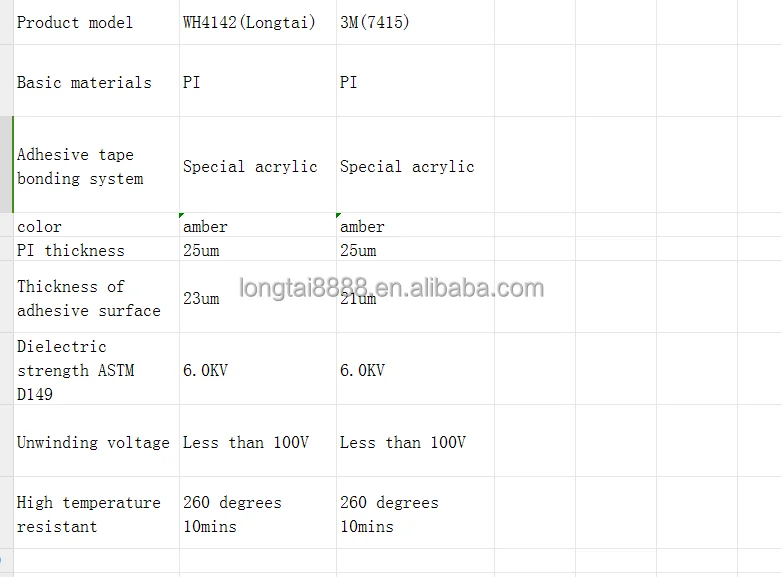 By comparing LongTai high-temperature tape with the brand 3M high-temperature tape, LongTai's high-temperature tape has been in mass production since 2017, with stable product performance and a single product cooperation amount of 600000 USD dollars. It has been delivered to Foxconn and applied to Nvidia's products. LongTai's Hongbai code: 0030025 Tape part number: 0105003-0030016