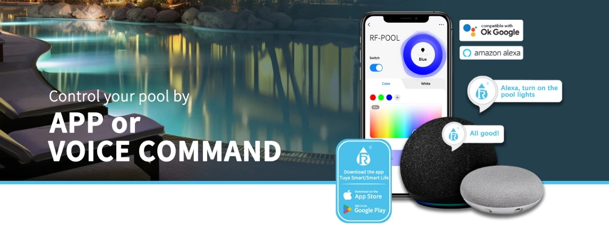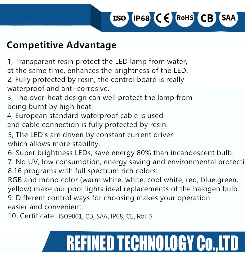 RF-5G-HP | 35W | 18pcs High Power LED | 12V AC | Cool White & RGB Color Changing | 316 Stainless Steel Housing, Cord can be customized | The light with can size: 10 inch |
