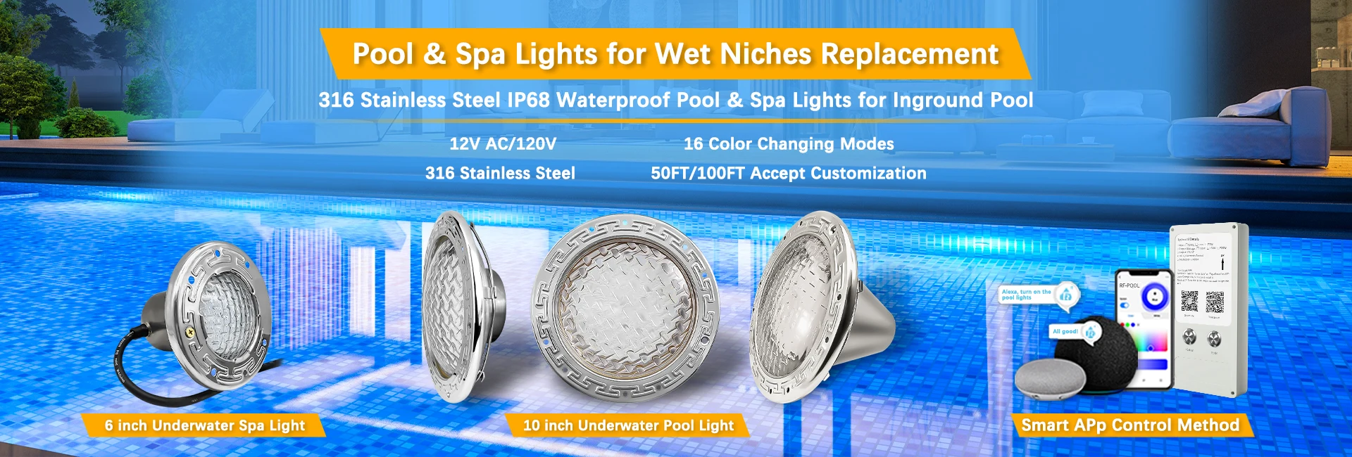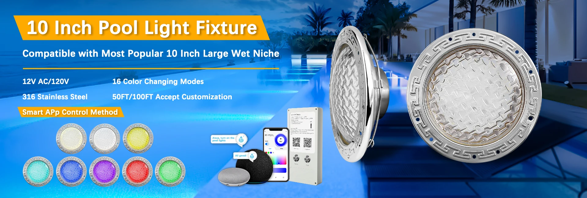 RF-5G-HP | 35W | 10 Inch Pool Light Fixture | 120V AC | |||