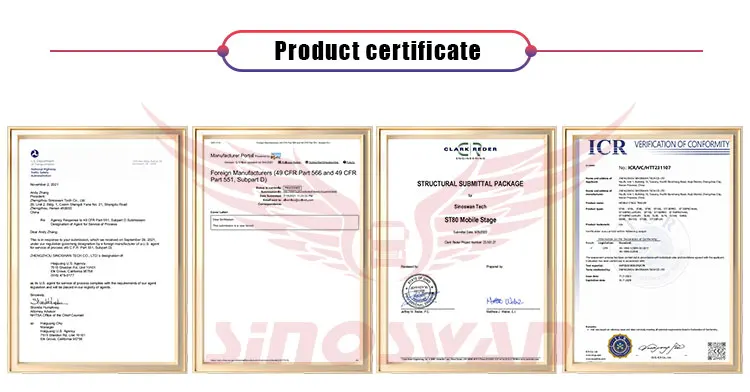 B: Enjoy a five-year warranty on stage structures and the hydraulic system, provided there is no misuse or damage caused by human error. Additionally, benefit from a two-year free warranty on sound systems, light systems, LED walls, and generators. Parts are provided free of charge based on FOB China. |