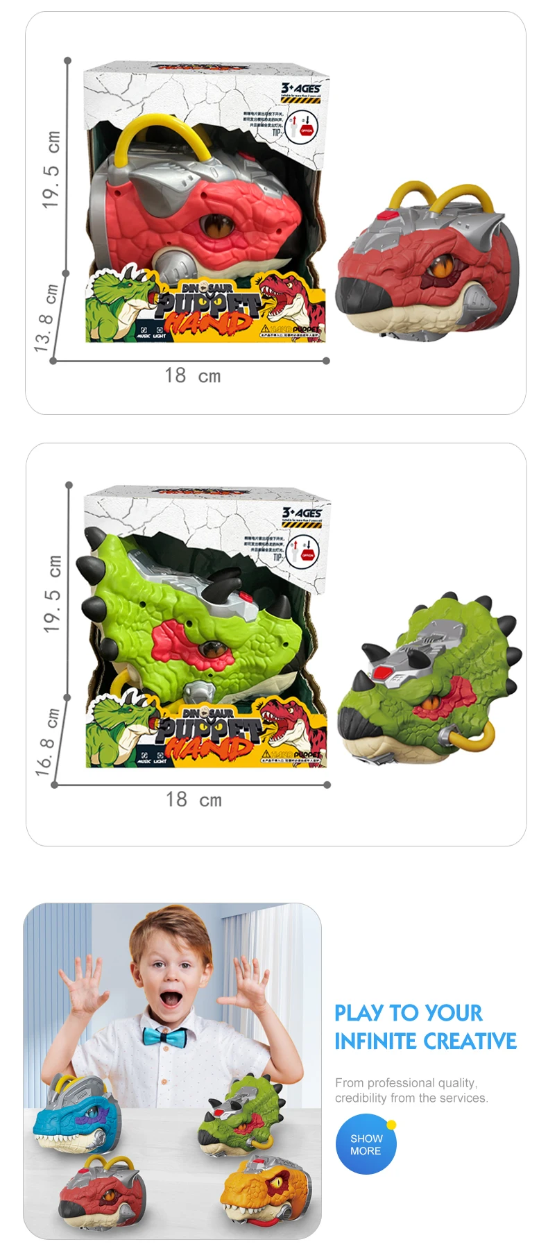 Item No. | 436072/436073/436074/436075 | Description | Hand Puppets Dinosaur Toys |