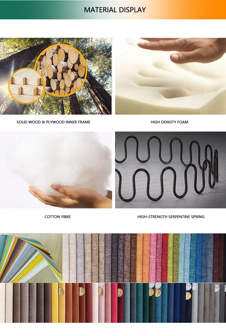 4.What's your customized service? We can customize the color of fabric and wood, 2-3 designs per container, and also customize the marks and company logo.