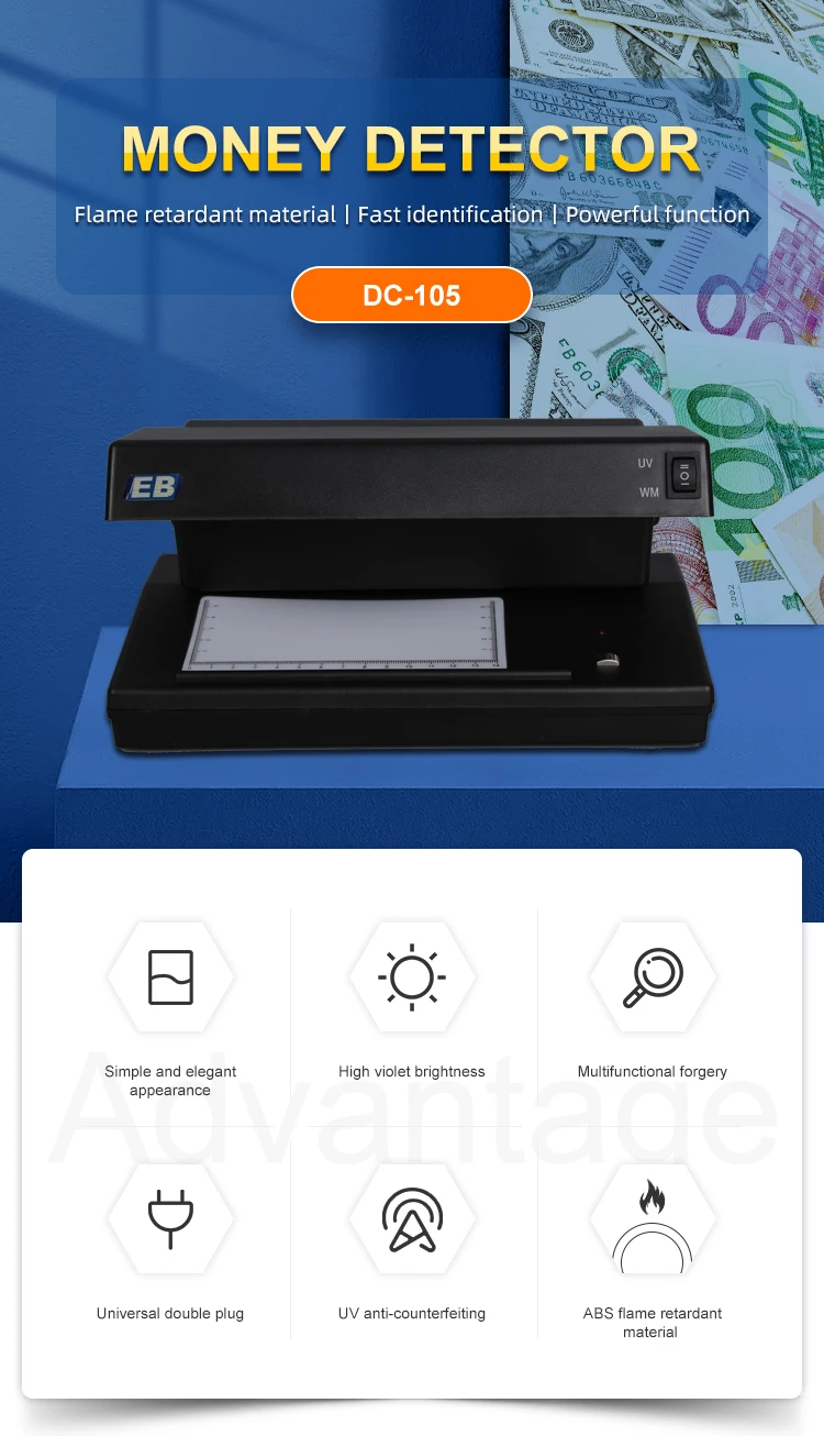 Verifies all kinds of banknotes(bills),credit cards,traveller's cheques,passports,IDs,and other legal documents. | √ | |