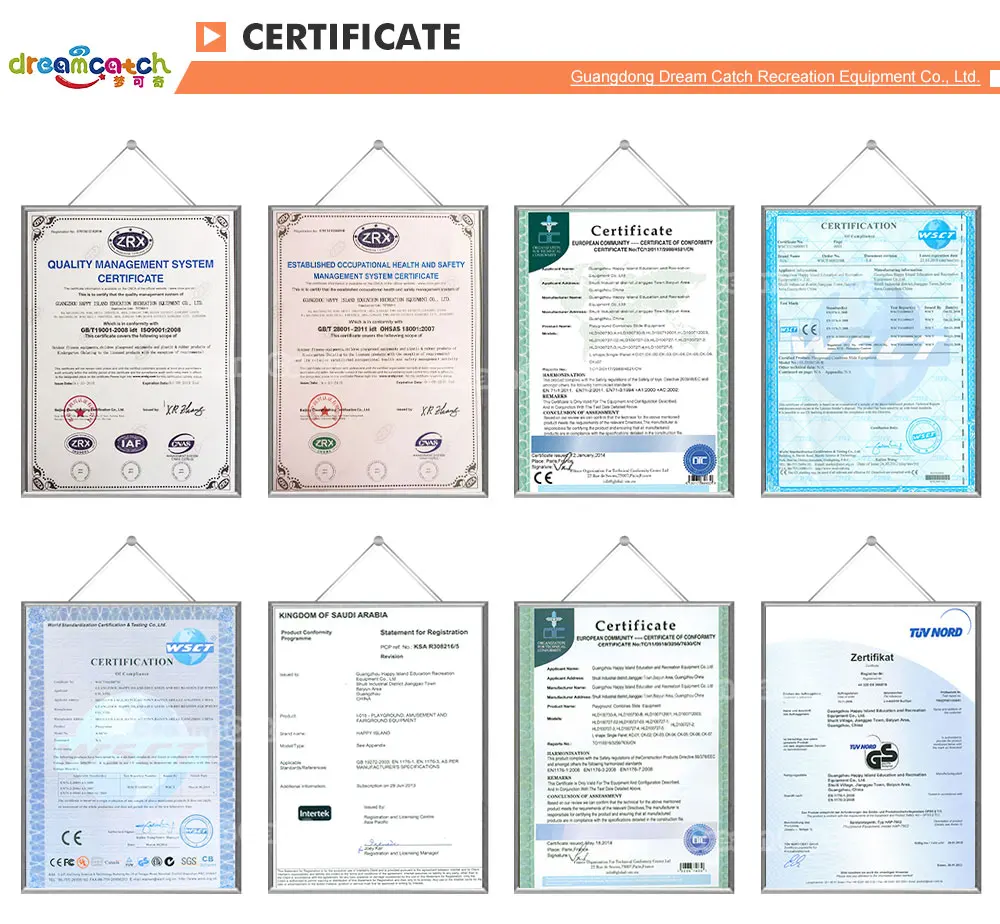 4, Does your product have any certifcate ? Yes, our products comply with Eu standard. But for indoor & outdoor playground, we don't have certificate for every model. And most playground is customized. So the certificate is always applied by our client considering the cost.