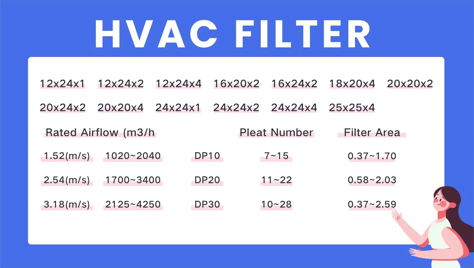 Dimension (mm) | Rated Air Flow (m3/h) | Initial Resistance (Pa) | Efficiency (class) | Media |