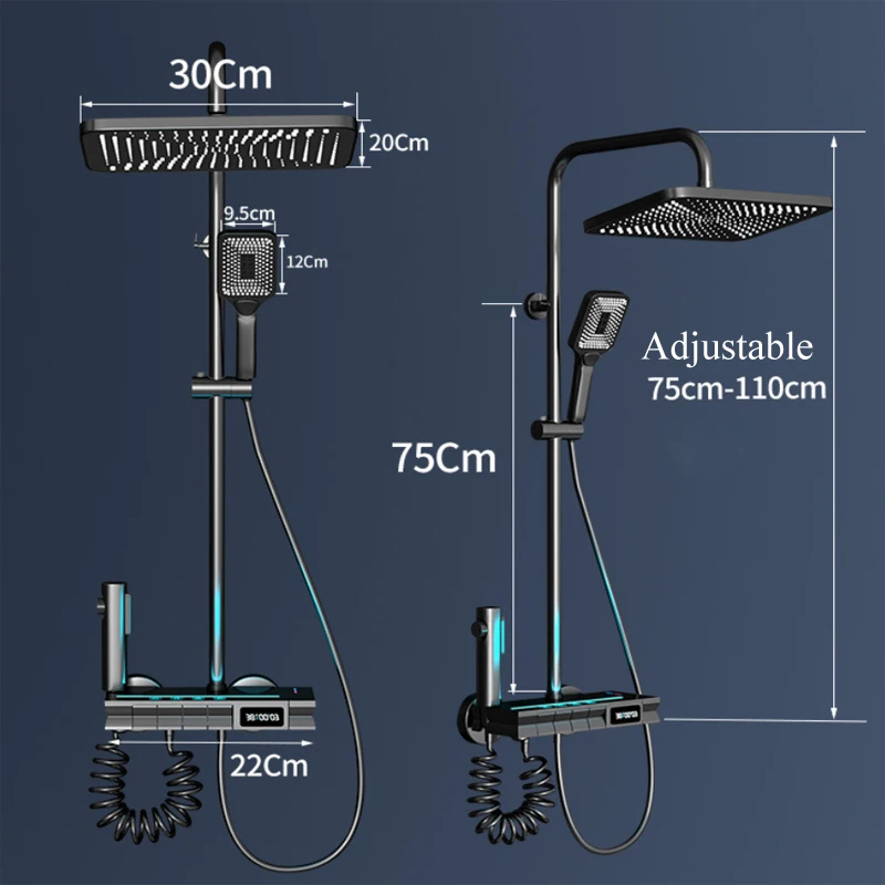 Bathroom Full Set White Grey Bathtub Rainwater Pressurized Digital LED Shower Set