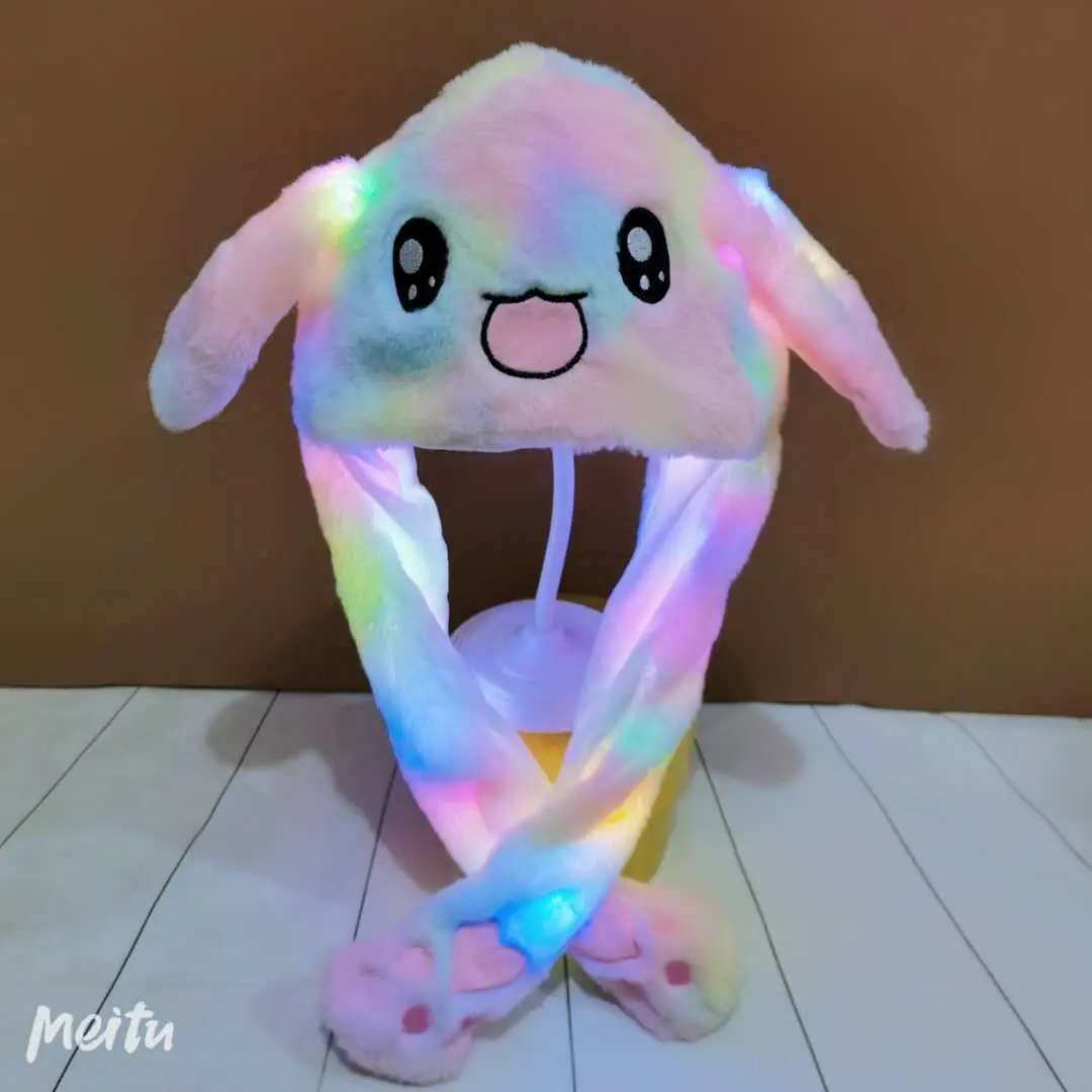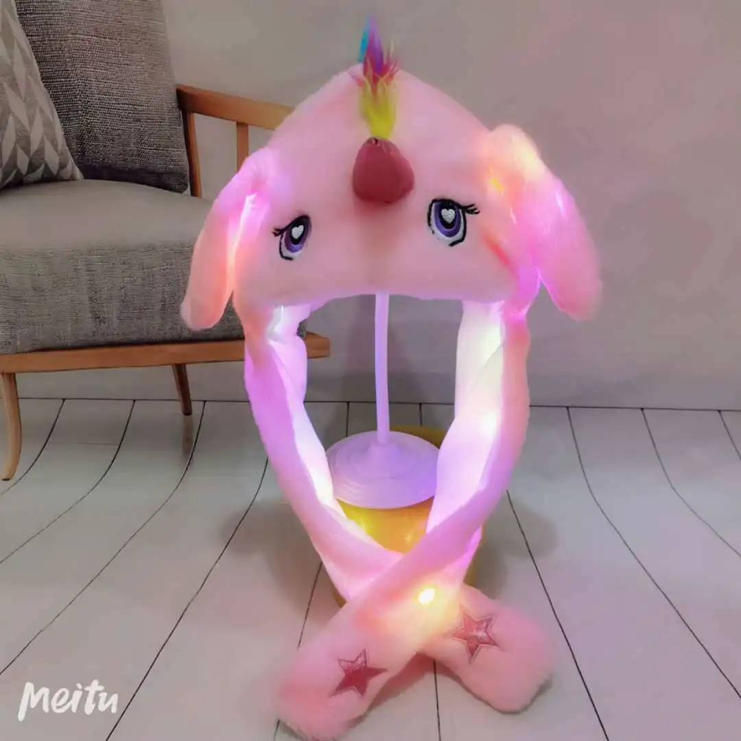 Product Name: | CPC CE Kawaii Kids Rabbit Hat Led Lighting Peluches Light Up Unicorn Stuffed Animals Toys Hat Bunny Airbag Moving Ear Hat Kids |