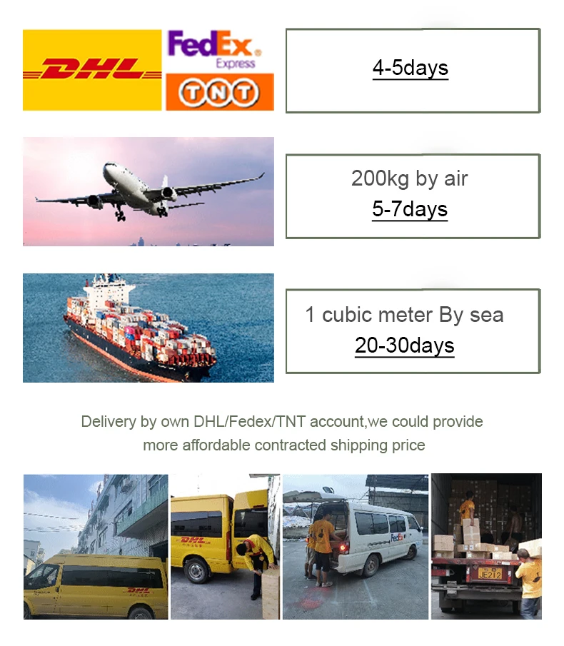 Shipping | 3-5 days by DHL,FEDEX,TNT ; 5-7 days by air ; 20-30 days by sea | ||||||